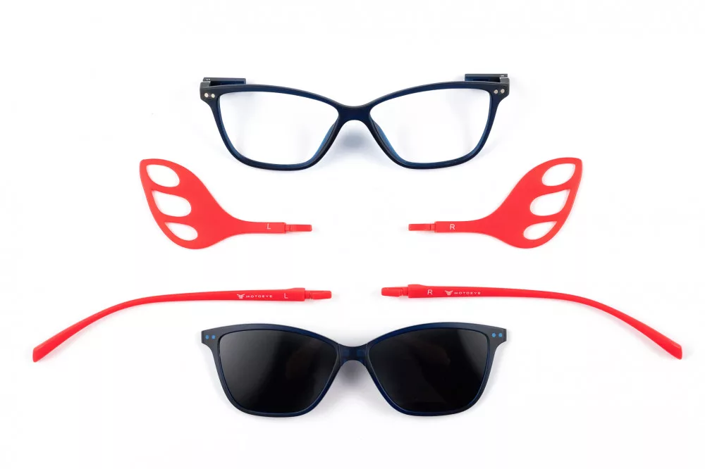A szárak cseréje gyors és egyszerű, a rögzítési pontok biztonságosak, így a szemüveg könnyedén átalakítható motoros és utcai használat között. Ennek köszönhetően nincs szükség külön motoros és külön hétköznapi dioptriás szemüvegre.